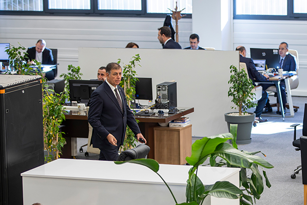 Toplam 80 kişi var ofiste… Başkan Tugay’a, Genel Sekreter’in ya da daire başkanının farklı bir noktada odası olup olmadığını sordum. Başkan Tugay, “Burası herkesin tam gün ofisi… Bir daire başkanının masası var başka yerde ofisi yok. Genel sekreterin başka bir yerde ofisi yok” dedi.