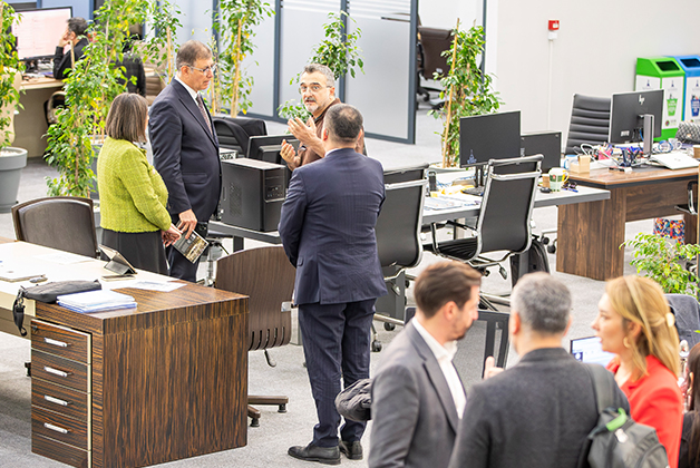 Açık Ofis’e girdiğim andan itibaren zaman zaman telefonla görüş aldığım Genel Sekreter, daire başkanları ve şirket müdürleriyle yürürken 3-5 metre aralıklarla karşılaşınca, ayakta bazı isimleri yan yana konuşurken görünce aslında amacın daha yakın çalışma, hızlı olma ve takım ruhunu arttırma olduğunu anladım.