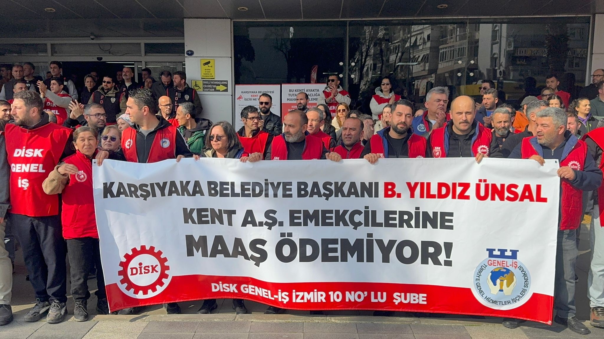 Yaklaşık 7 aydır maaşlarını tam alamayan DİSK’e bağlı Genel-İş üyesi işçiler eylemlerine devam ederken sendikanın protestosunu dün belediye meclisi salonuna taşıması sonrası 3 Mart’ta (bugün) Karşıyaka Belediye Başkanı Yıldız Ünsal ile yapılması planlanan görüşmenin iptal edildiğini duyurdu.