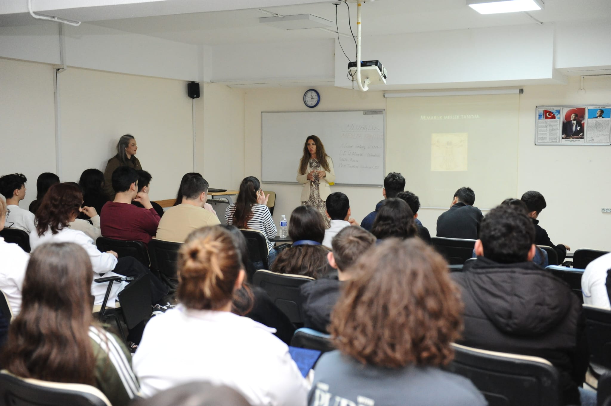 Karşıyakalı öğrencilere ücretsiz eğitim desteği sunan Karşıyaka Belediyesi İsmail Hakkı Tonguç Gençlik Eğitim Merkezi (KARGEM), düzenlediği etkinliklerle gençlerin kariyer planlamalarına da katkı sağlıyor. Bu kapsamda merkezde gerçekleştirilen Meslek Tanıtım Günleri’nin ilkinde, Mimarlar Odası İzmir Şubesi’nden Güneş İlman ile 8, 11, 12. sınıf ve mezun öğrenciler bir araya geldi. İlman’ın sunumuyla mimarlık hakkında detaylı bilgi sahibi olan gençler, mesleğe dair sorularına da yanıt alma imkanı buldu. 4 Nisan’da Gıda Mühendisleri Odası İzmir Şubesi üyelerinin konuk olacağı Meslek Tanıtım Günleri; ilerleyen günlerde Diş Hekimleri, Elektrik Mühendisleri ve Çevre Mühendisleri Odalarından uzmanların katılımıyla devam edecek.