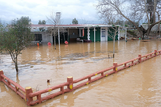 İzmir'de son günlerde etkili olan sağanak nedeniyle Küçük Menderes Nehri'nde taşkın yaşandı, Ödemiş ilçesindeki tarım arazileri ve ahırları su bastı.