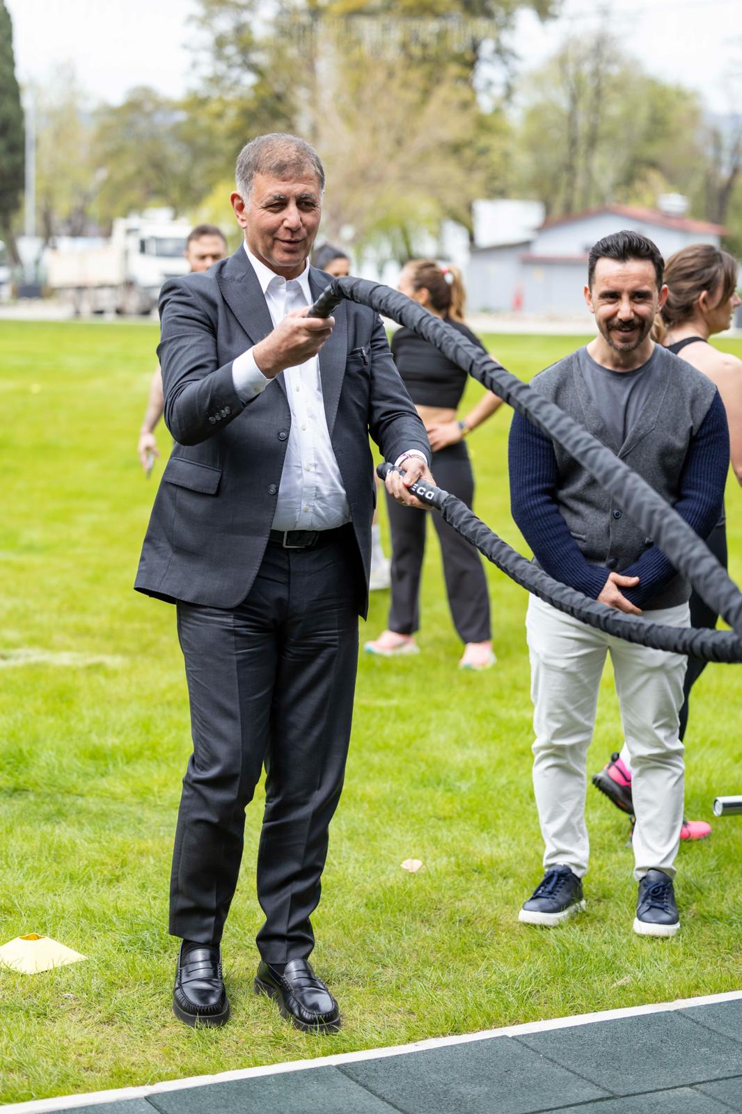Kültürpark’ın Zeytin Sahne Etkinlik Alanı’na tesisin çok yakıştığını söyleyen Başkan Tugay, “İzmir’de sporu da farklı şekilde teşvik etmeye çalışıyoruz. Her yaştan insanın spor yapabilmesi için olanaklar sağlamaya çalışıyoruz. Onlardan birisi spor istasyonları. Bunların dördüncüsünü Kültürpark’ta açtık. Bu biraz daha farklı bir format. Biraz daha içeriği zengin. Bir sponsor ile beraber yaptık burasını. Aslında bir spor salonunda bulabileceğiniz hemen her türlü alet burada var. Onun dışında da topla oynanan sporlar için de burada malzemeler var. Kullanmak isteyen insanlar kimlikleriyle malzemeleri alıp kullanıyorlar. Sonra da gelip teslim ediyorlar. Yeni düzenlediğimiz bu çim alanda, açık havada, temiz ve nezih bir ortamda sporlarını yapabiliyorlar. Kültürpark’a yakışan yeni bir tesis oldu” dedi.