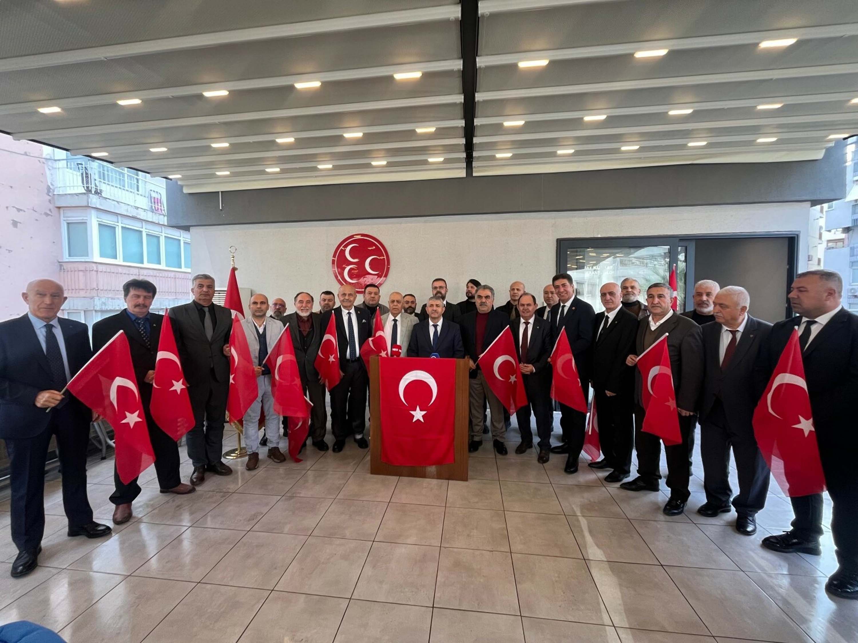 İzmir'de faaliyet gösteren tüm Doğu ve Güneydoğu Anadolu dernekleri federasyonları başkanları ile kanaat önderleri Milliyetçi Hareket Partisi (MHP) İzmir İl Başkanlığı'nda toplanarak Türk bayrağına yapılan saldırıya tepki gösterdi. Basın mensuplarına açıklamalarda bulunan MHP İzmir İl Başkanı Veysel Şahin, "Birliğimizi, beraberliğimizi ve kardeşliğimizi hedef alan hiçbir provokasyona geçit vermeyeceğiz. Şanlı Türk bayrağımıza uzanacak hiçbir kirli ele asla müsaade etmeyeceğiz" dedi.