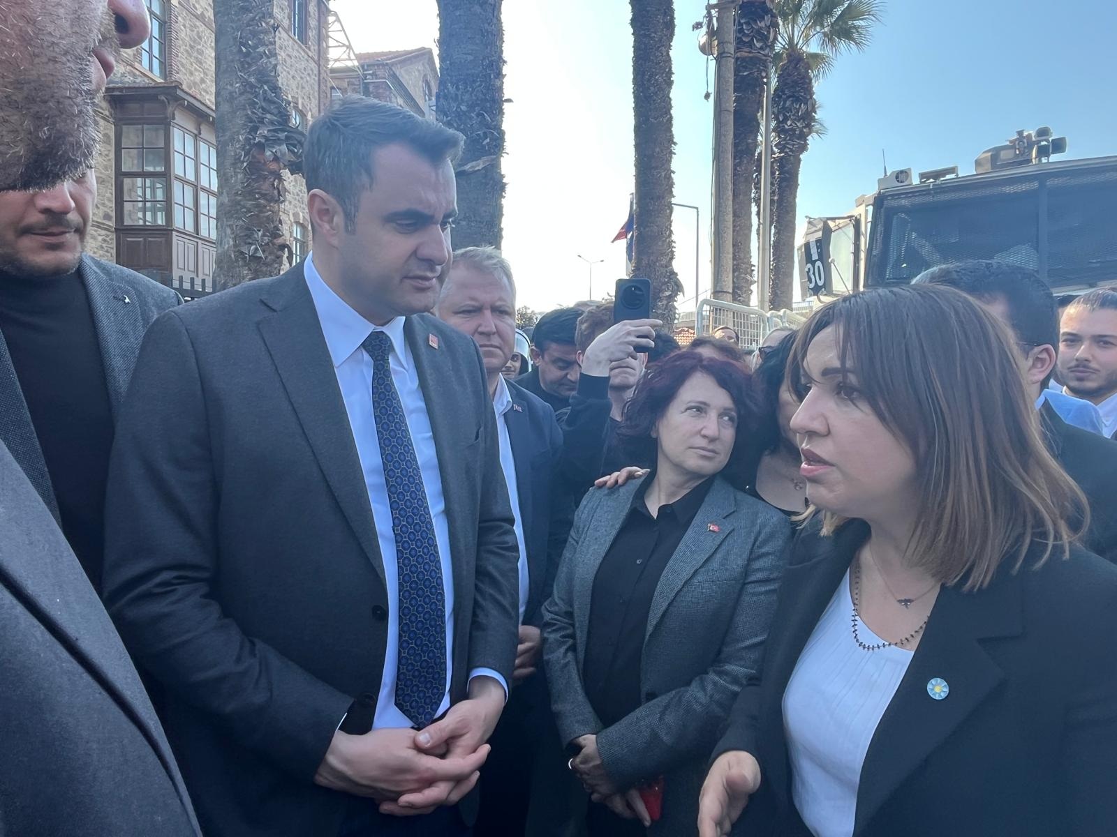 İzmir milletvekilleri Deniz Yücel, Ednan Arslan ve CHP İzmir Milletvekili Çağatay Güç'ten Meslek Fabrikası önünde toplanan CHP'lilerin de yer aldığı eylemcilere 'yolu açalım' çağrısı gelirken, kalabalığın içinden CHP'li isimlere tepki geldiği de duyuldu.