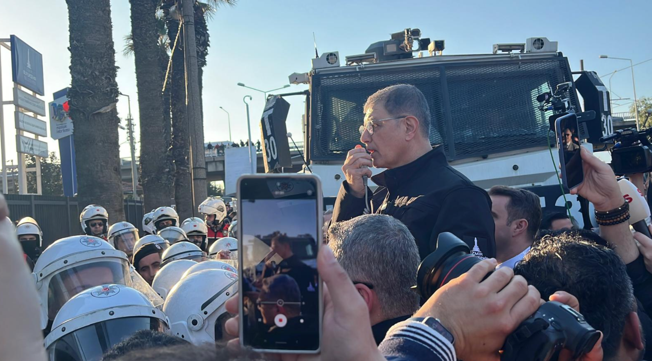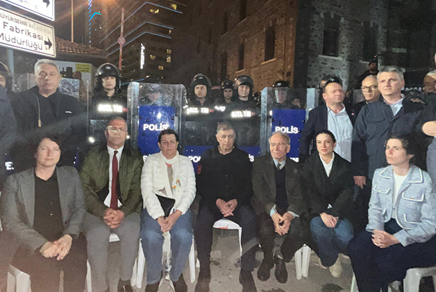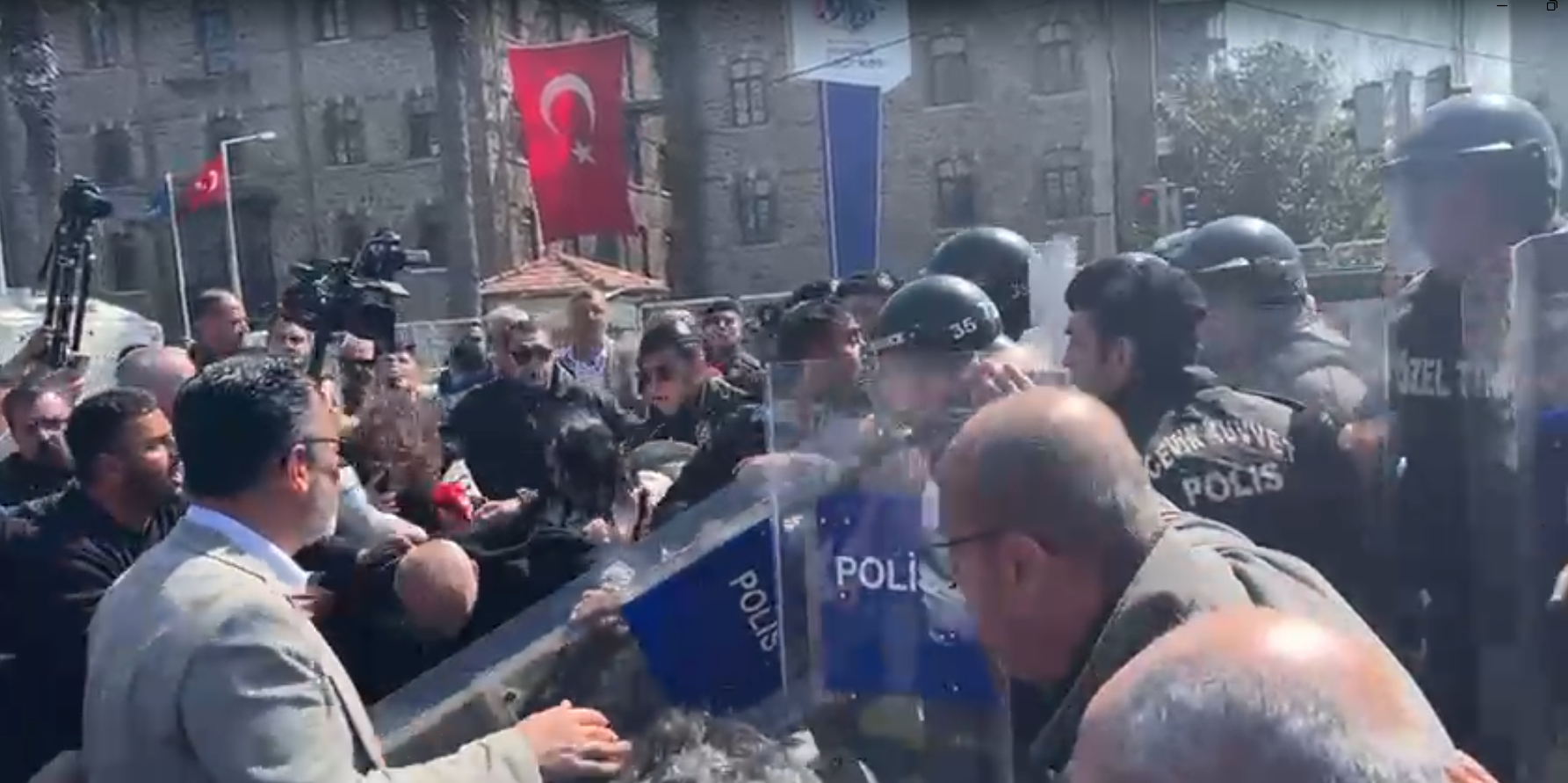 Pankartın indirilmesinin ardından polis ve eylemciler arasında yaşanan arbedede CHP İzmir İl Başkanı Güç ve İl Başkan Vekili Aydın polis müdahalesine maruz kaldı!