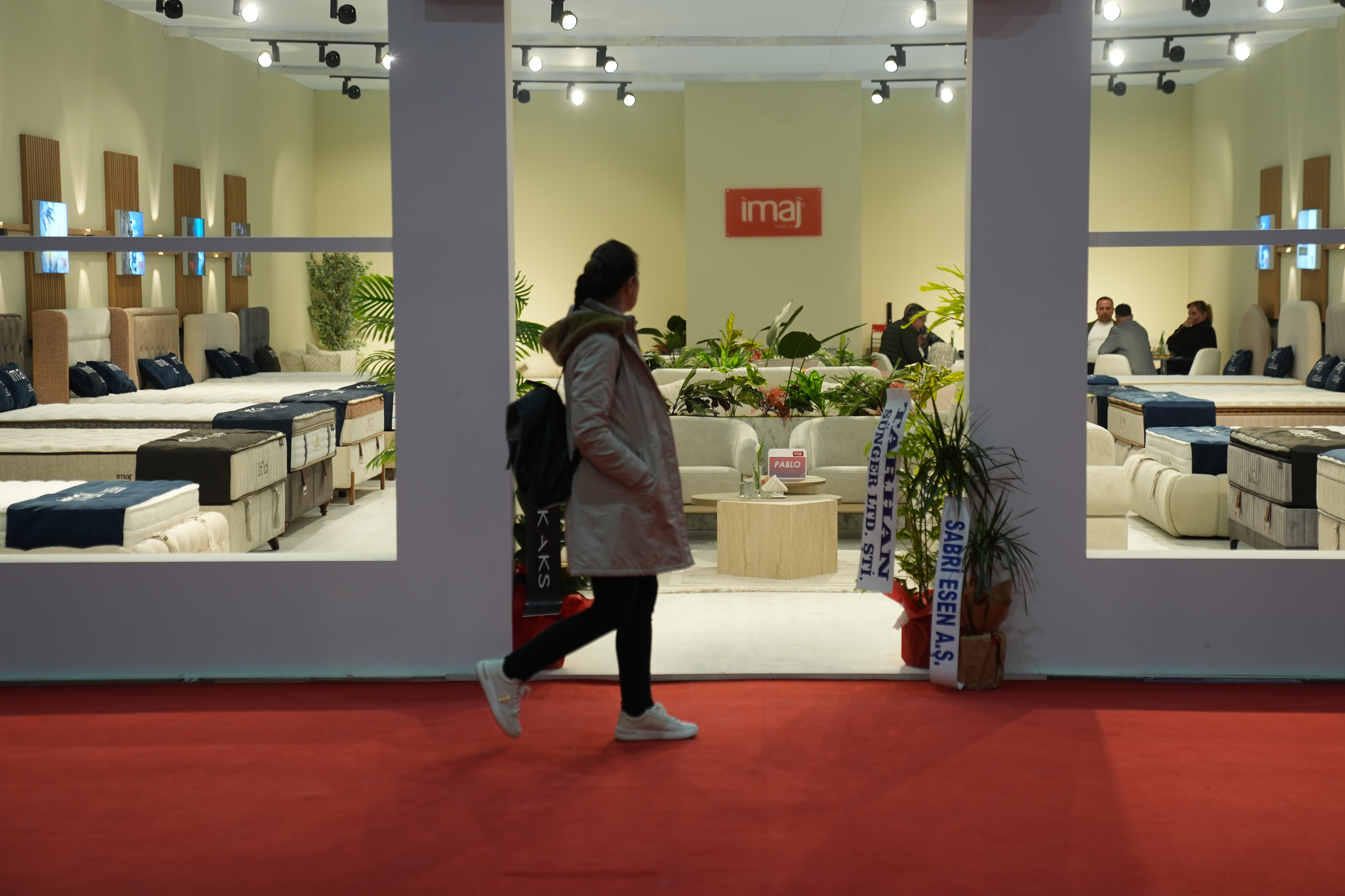 Fuarda klasik, modern ve modüler mobilya üretimi yapan firmalar masa, sandalye, oturma grupları, çocuk ve genç odaları, ofis ve bahçe mobilyaları ile yatak ve baza ürünlerini sergiliyor. (AA)