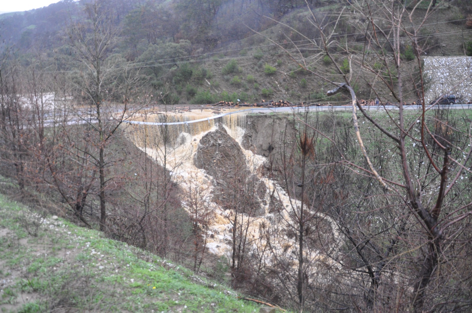 Ödemiş ilçesinde süren yağışın ardından, Ödemiş ile Manisa'nın Turgutlu ilçesini birbirine bağlayan kara yolunun bir bölümünde çökme oluştu.