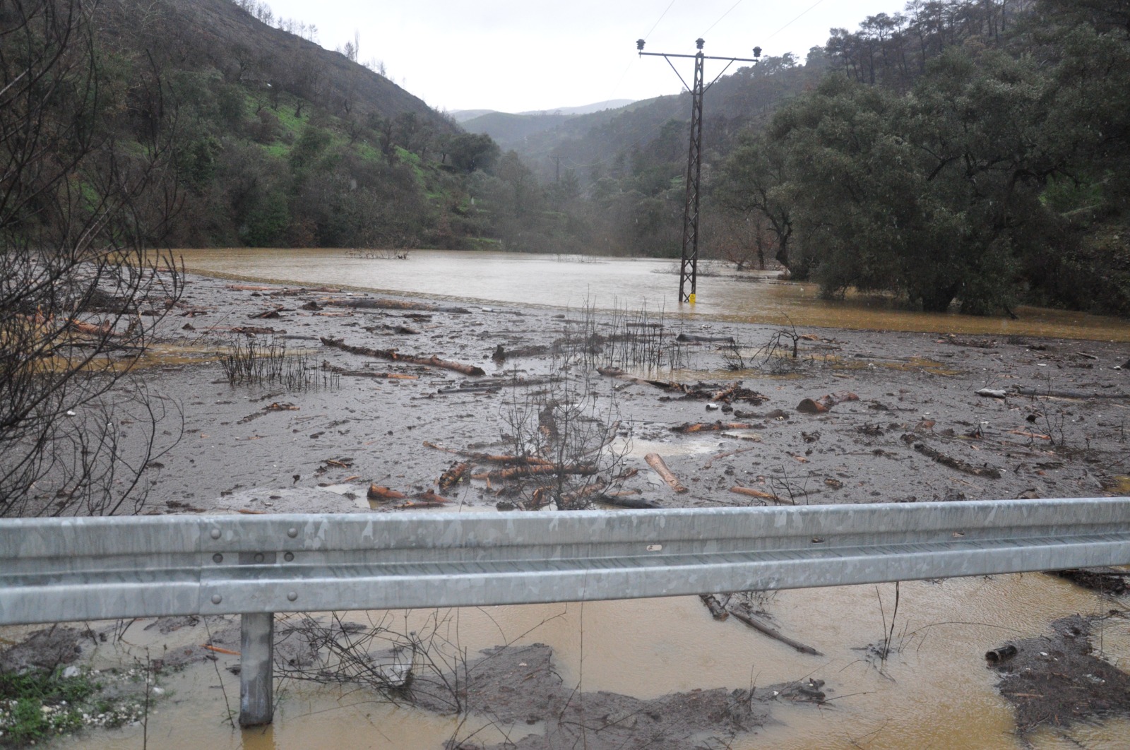 İzmir'de etkili olan kuvvetli sağanak nedeniyle Ödemiş-Turgutlu kara yolunda çökme meydana geldi, güzergah ulaşıma kapatıldı.