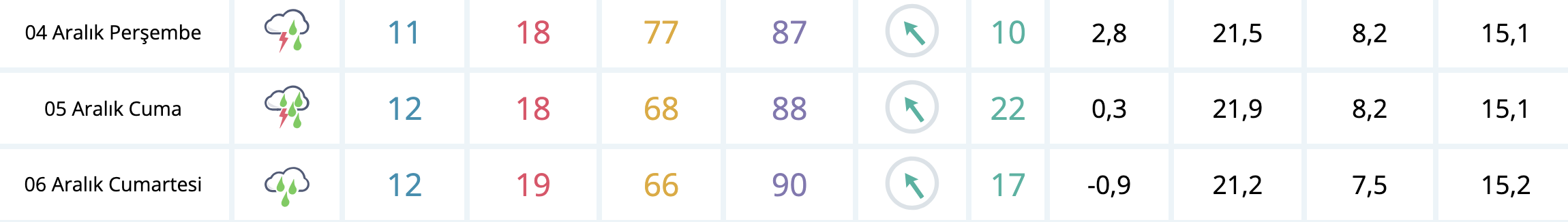 5 Aralık Cuma günü ise yağışlar İzmir genelinde etkisini daha da artıracak. Kuvvetli sağanak ve gök gürültülü sağanak yağışların gün boyunca sürmesi bekleniyor.