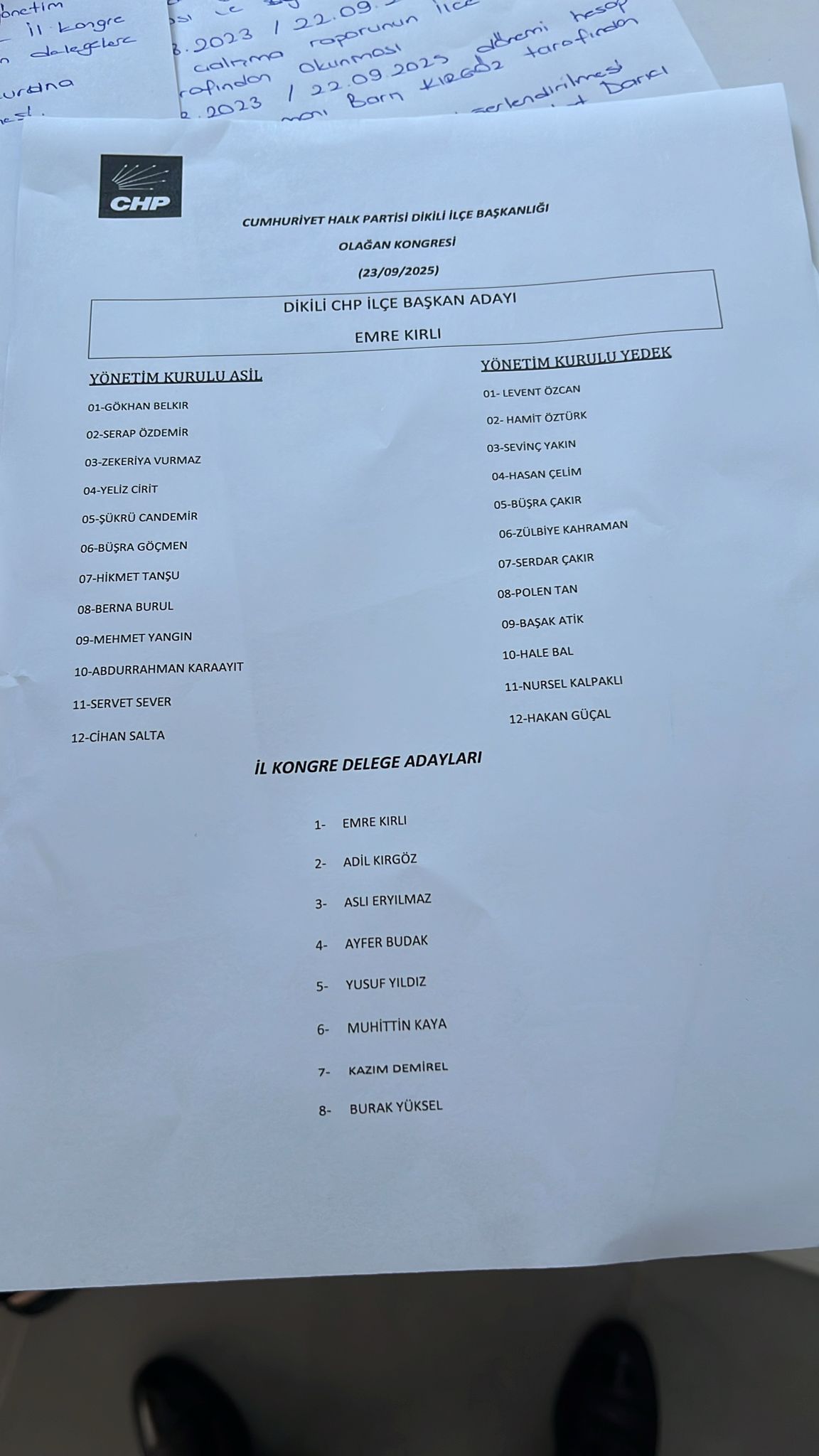Dikili'de Kırlı'nın listesi belli oldu. Dikili Belediye Başkanı Kırgöz, 8 kişilik il delege listesinde yer aldı.