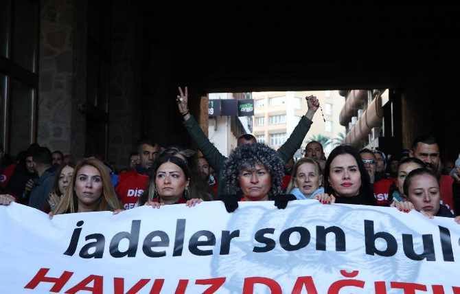Eylemlerin dördüncü gününde işçiler yarım gün iş bırakarak Konak Pier’den Kültürpark’a yürüyüş gerçekleştirdi.