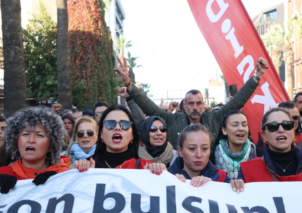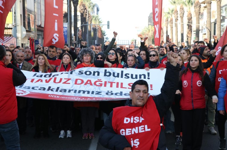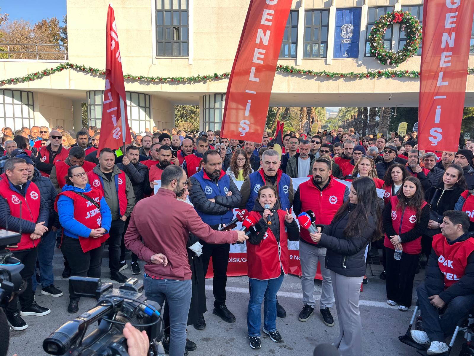 İzmir Büyükşehir Belediyesi şirketlerinde yaşanan ödeme krizi sonucu DİSK Genel İş Sendikası eylem takvimini sürdürüyor. Eylemlerin 4. gününde işçiler Kültürpark’a yürüyüş gerçekleştirdi. Açıklama yapan işçiler CHP Sözcüsü Yağmur Yurdakul Özkan'a yüklenerek "Kaç kişi tutuklandınız da bize oradan ahkâm kesiyorsunuz? Buradaki işçinin emeğiyle, bu işçilerin astığı direklerle, afişlerle o koltuktasın. Bu alana geleceksin" dedi. İşçiler ayrıca Başkan Tugay'a çağrı yaptı.