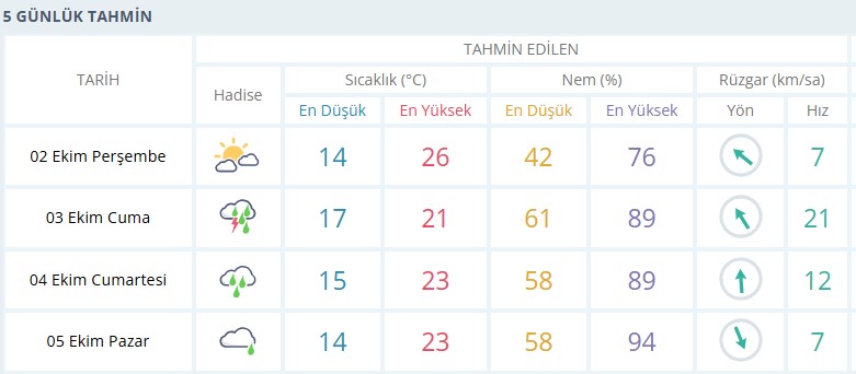 GERÇEKİZMİR - Meteoroloji Genel Müdürlüğü’nün (MGM) son verilerine göre İzmir’de 3 Ekim Cuma günü (yarın) kuvvetli gökgürültülü sağanak yağış etkili olacak. Cuma günü kente giriş yapacak yağmur cumartesi ve pazar günü de etkisini azaltarak etkili olacak.