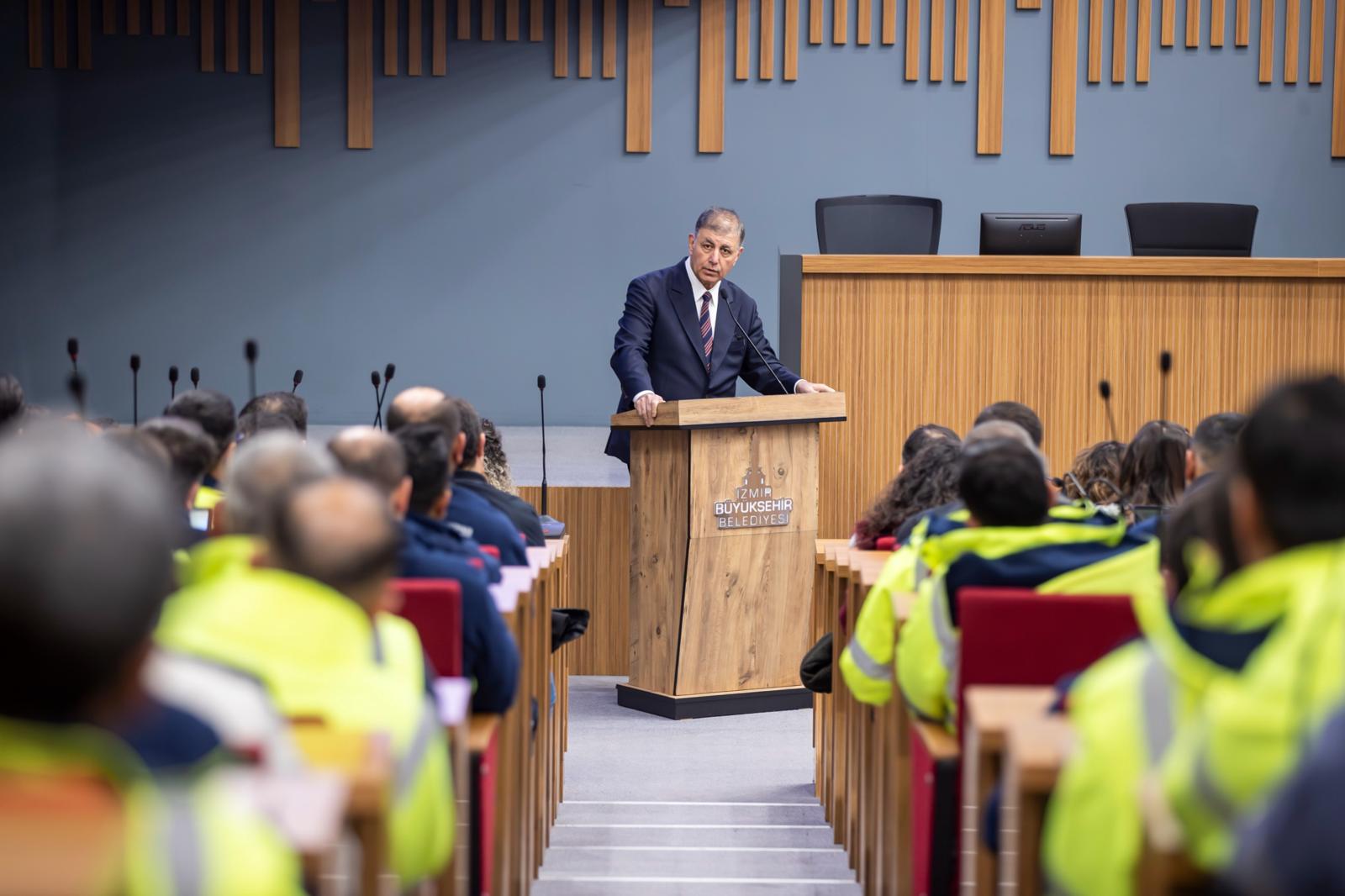 Belediye çatısı altında görev yapanların, kurumun gözü kulağı durumunda olduğunu söyleyen Tugay, “Yaptığımız iş çevre sağlığıyla, toplum sağlığıyla doğrudan ilgili. Yani sadece bir iş yapmıyorsunuz. Aynı zamanda şehre, şehirde yaşayan insanlara, aslında tüm canlılara sahip çıkıyorsunuz. Kamuda çalışmak sadece bir iş yapmak değildir. Aynı zamanda ülkemize, insanlarımıza, şehrimize sahip çıkmak demektir” dedi. Kentin İzmir Büyükşehir Belediyesi çalışanlarına emanet olduğunu vurgulayan Başkan Tugay, “Şehir size emanet. Şehir bize emanet. İzmir güzel bir şehir. Gerçekten dünya güzeli bir şehir. Türkiye'de herkesin gelip yaşamak istediği yerlerden birisi. Böyle güzel bir şehre layık olduğu hizmeti getirmemiz lazım. Bunu görevli olan tüm arkadaşlarımızdan bekliyorum” diye konuştu.