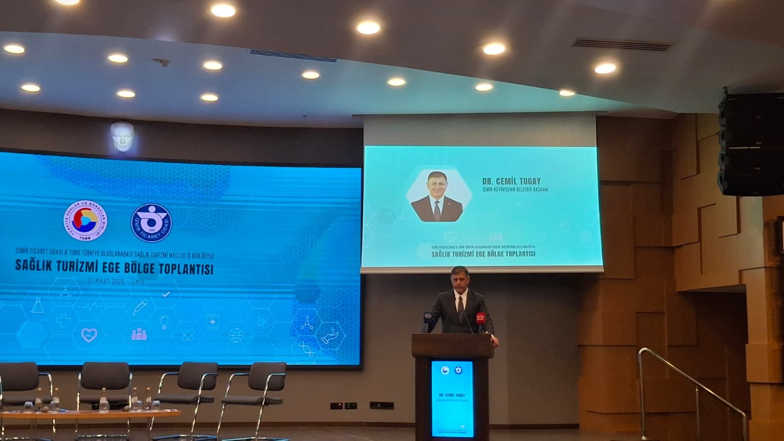 İzmir Büyükşehir Belediye Başkanı Dr. Cemil Tugay konuşmasında sağlık turizminin gelişimi önündeki yapısal sorunlara dikkat çekti.