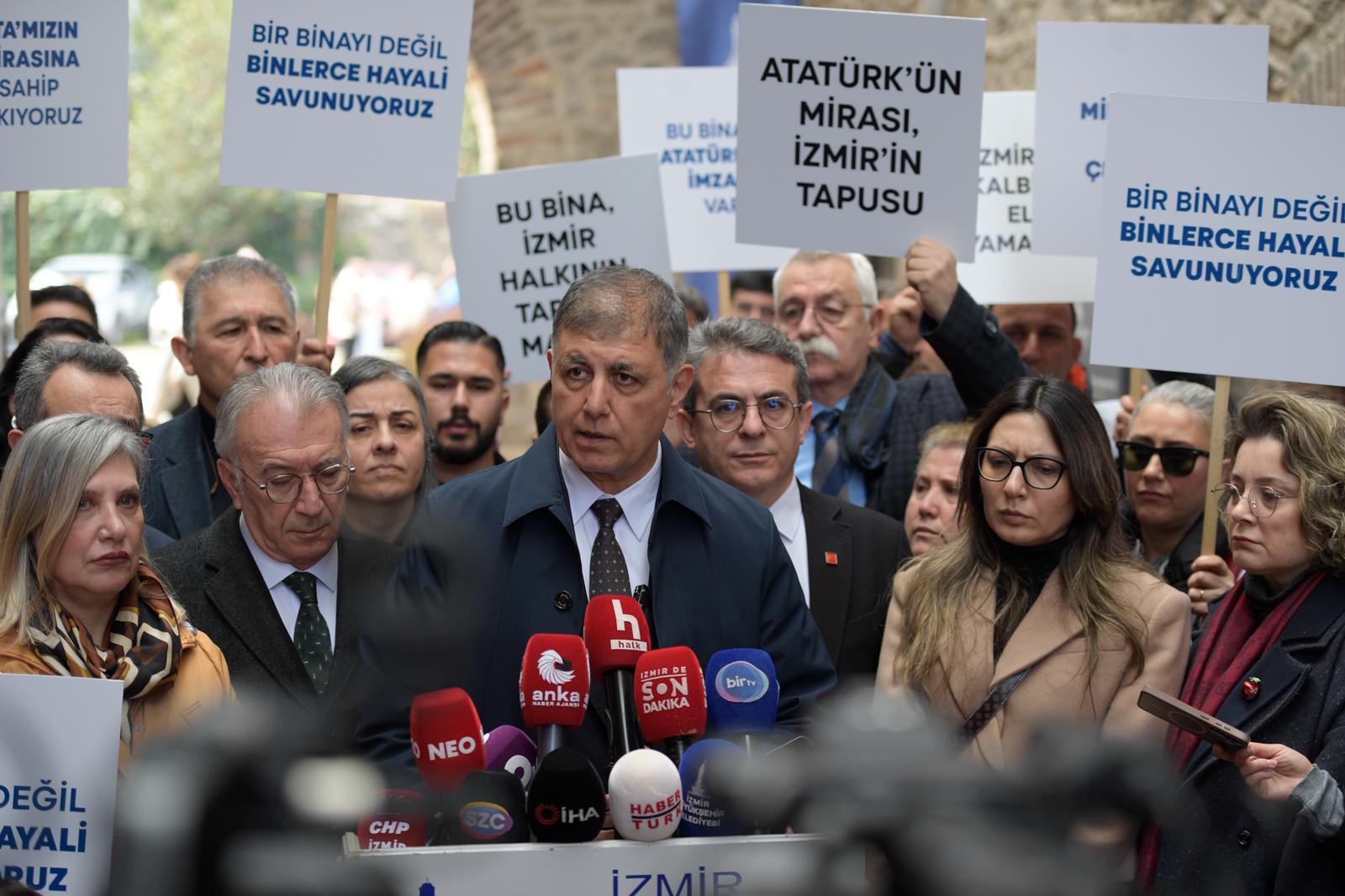 Bu bina Atatürk’ün İzmir’e kamusal bir bina olarak verdiği bir yapıdır. Bu bina Atatürk ve Bakanlar Kurulu tarafından verilmiştir. O günden bugüne İzmir’indir, belediyenindir. Uzun yıllardır yapılan restorasyonlarla İzmir’e ve İzmirlilere hizmet için kullanılan bir binadır. Bu emanete ihanet etmemizi kimse bizden beklemesin.
