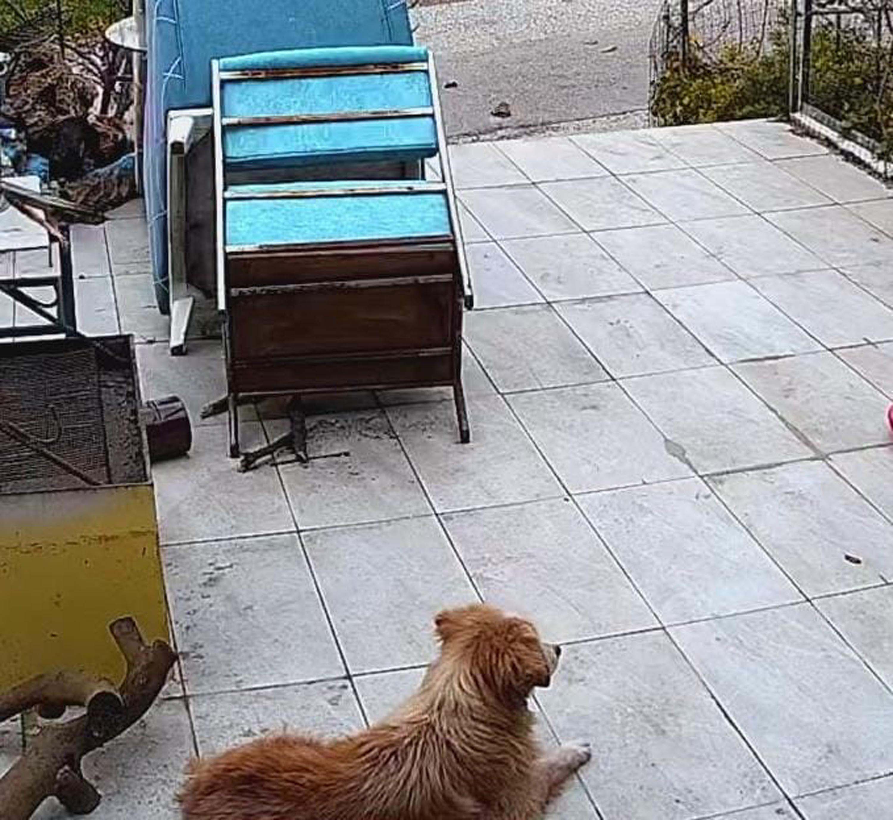 İzmir'in Seferihisar ilçesinde yol kenarında yatarken kamyonetin üzerinden geçtiği 'Meks' adlı sahipli köpek öldü. O anlar, güvenlik kamerası tarafından kaydedildi.